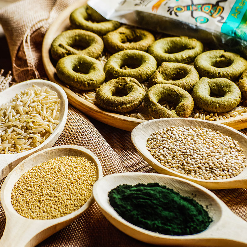 Las rosquillas integrales + Spirulina, son un snack artesanal 100% natural, de consumo inmediato para cualquier hora del día, por sus ingredientes, ayudan a tu cuerpo al ser una buena fuente de fibra, proteína, y naturalmente libre de gluten; llevalas contigo facilmente para los tiempos de descanso, o dale una deliciosa y nutritiva lonchera a tus hijos.
