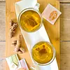 Es una infusión perfecta porque combina cúrcuma, jengibre y pimienta juntas en una base,de cacao con cardamomo y vainilla natural. La cúrcuma es un miembro de la familia del jengibre; su ingrediente activo es la curcumina responsable del color amarillo brillante.