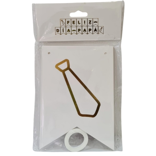 Banderin Feliz Dia Papá Blanco Con Dorado