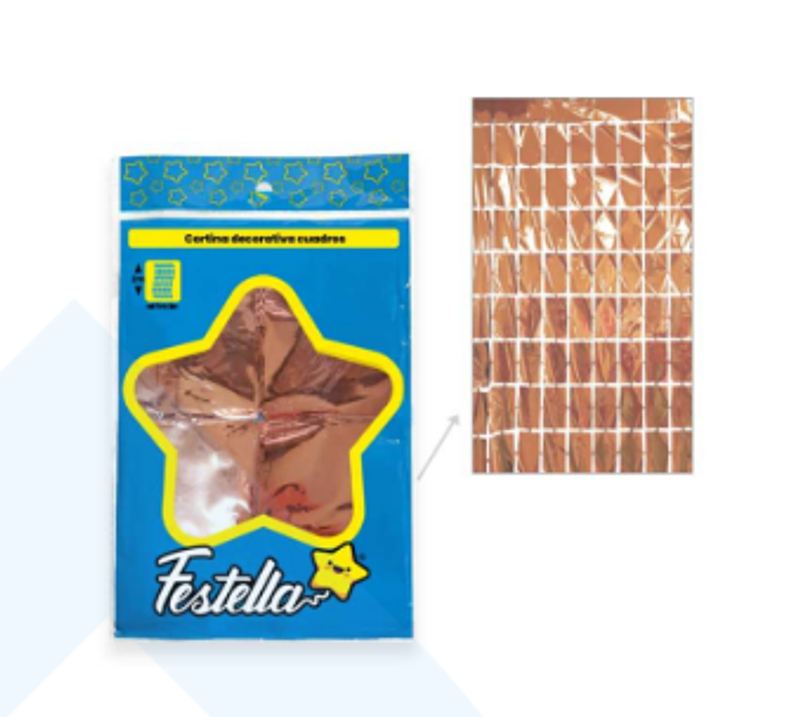 Cortina De Fiesta Espejo Cuadrado Gd Oro Rosa