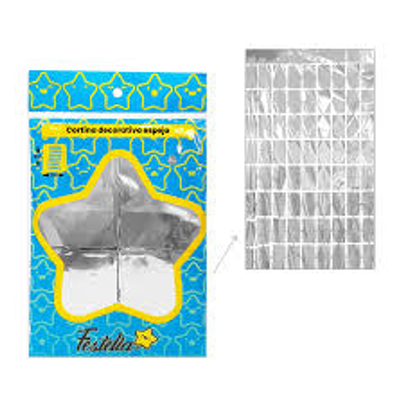 Cortina De Fiesta Espejo Cuadrados Plateado