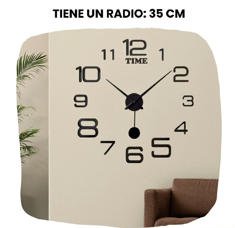 Reloj adhesivo de pared moderno y decorativo. Ideal para hogar u oficina. Fácil de instalar y personalizar en cualquier superficie.