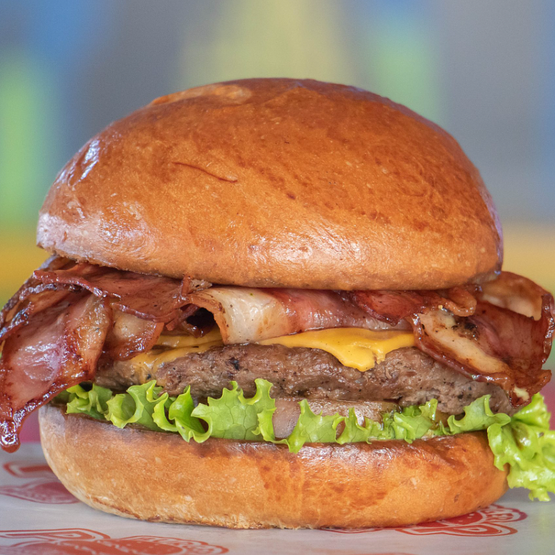 Hamburguesa al estilo neoyorquino, con muuuuucha tocineta, queso chedar, salsa de tomate y nuestra famosa salsa POP.