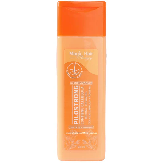 Acondicionador Pilostrong enriquecido con calendula, biotina, colágeno, cola de caballo y romero! Este revitalizante producto ayuda a fortalecer y estimular la producción de nuevos cabellos. Con ingredientes naturales que nutren y acondicionan profundamente, deja tu cabello suave, brillante y saludable.