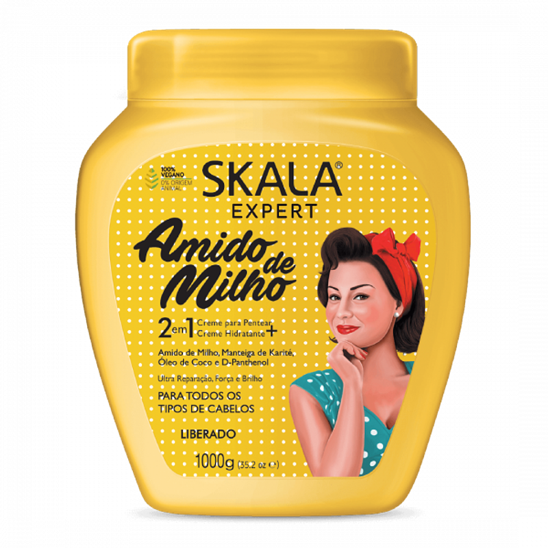 El Tratamiento Skala Amido de Milho (Almidón de Maíz) puede ser usado en todo tipo de cabello; repara, fortalece y genera mucho brillo, fuerza e hidratación a tu hebra capilar. Es un tratamiento que ofrece ultra hidratación para cabellos secos y porosos.
