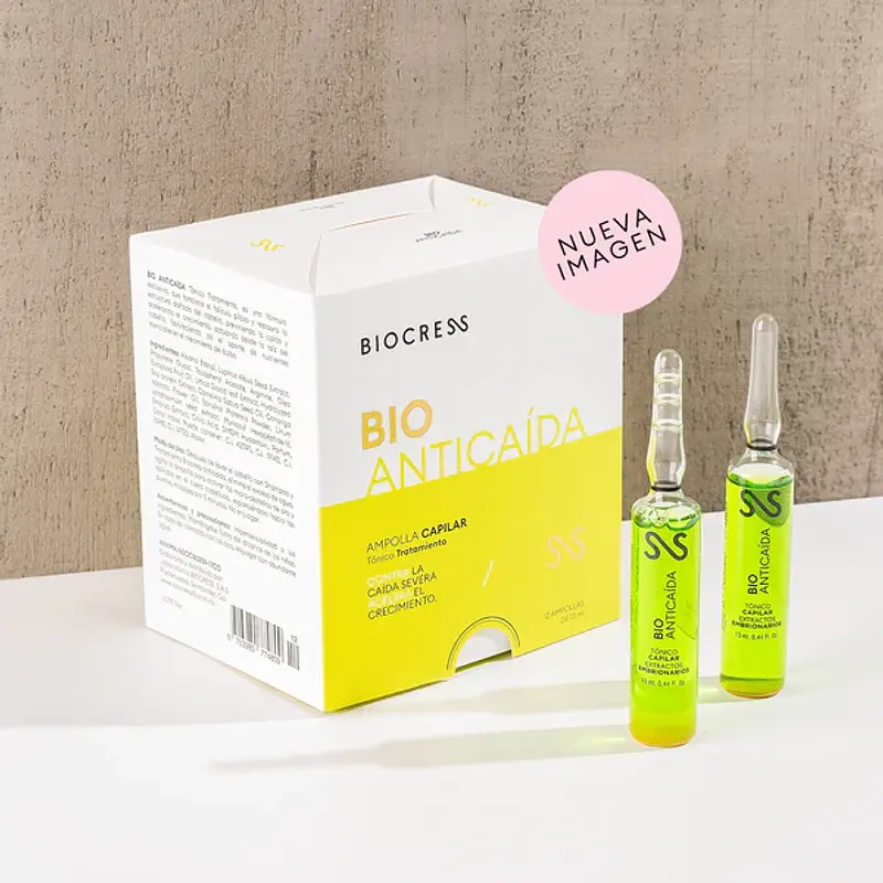 Estimula el crecimiento del cabello y previene su caída con el Tónico en Ampolleta Bio-Anticaída de BIOCRESS. Formulado con extractos naturales, este tratamiento intensivo trabaja directamente en el cuero cabelludo, revitalizando los folículos capilares para promover un crecimiento saludable y resistente. Su fórmula suave y refrescante brinda una sensación inmediata de confort y relax, ideal para quienes buscan un cabello más fuerte y un cuero cabelludo saludable y equilibrado.