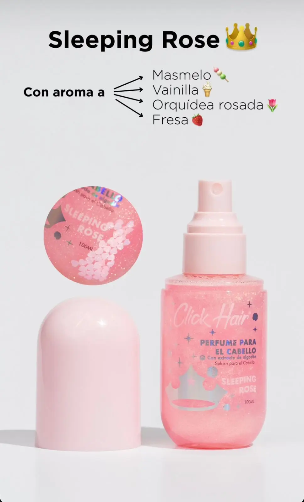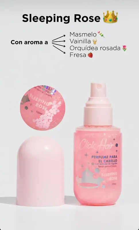 Convierte tu melena en un verdadero cuento de hadas con los Perfumes Click Hair, diseñados para perfumar, refrescar y dar un toque mágico con destellos de glitter y lentejuelas. Sus fragancias dulces y femeninas harán que tu cabello huela delicioso y brille como el de una princesa.