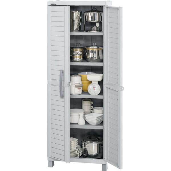 Armario Grande con 4 entrepaños ajustables que resisten hasta 25 Kg cada uno. Fácil de armar, mover y limpiar.