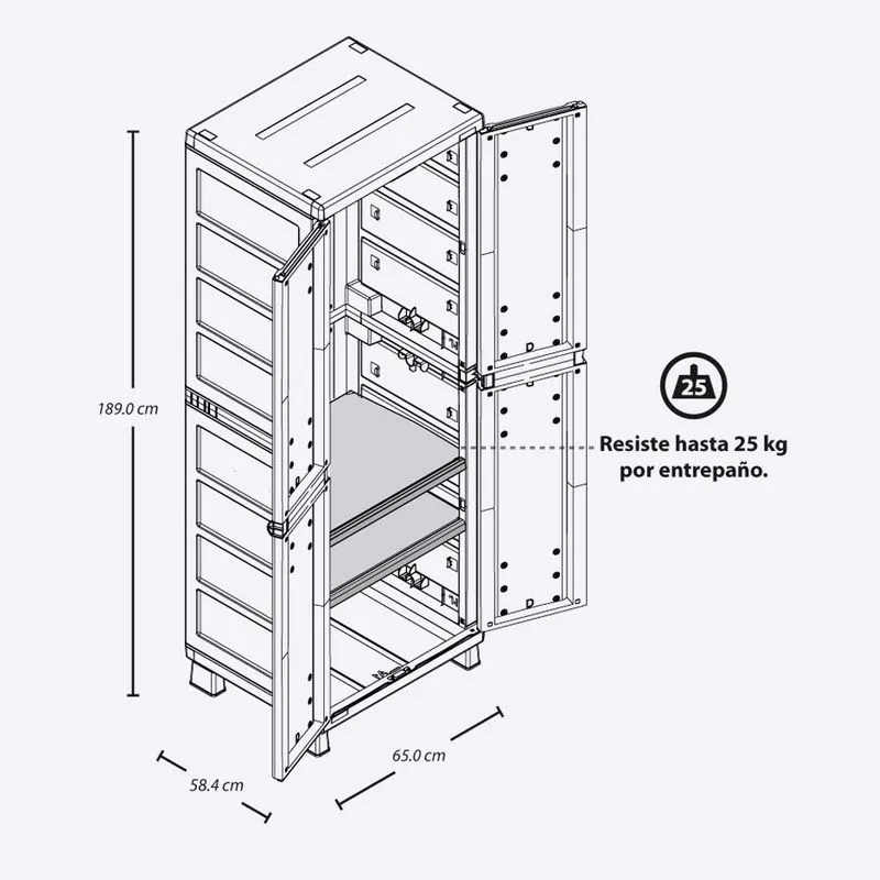 Fácil de armar, mover y limpiar. Con la resistencia y beneficios del plástico. Excelente capacidad interior, con orificio para uso candado para mayor.