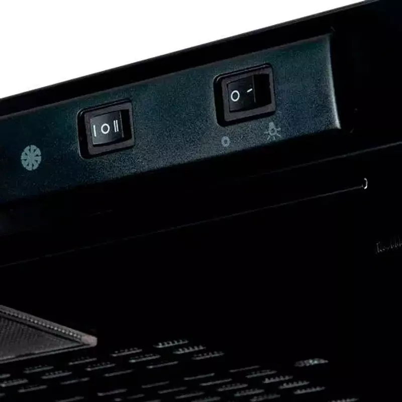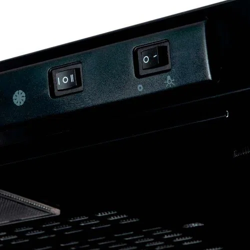 Campana negra de 60 cm de fácil limpieza, sistema de fácil acceso al interior de la campana para mantenimiento y limpieza.