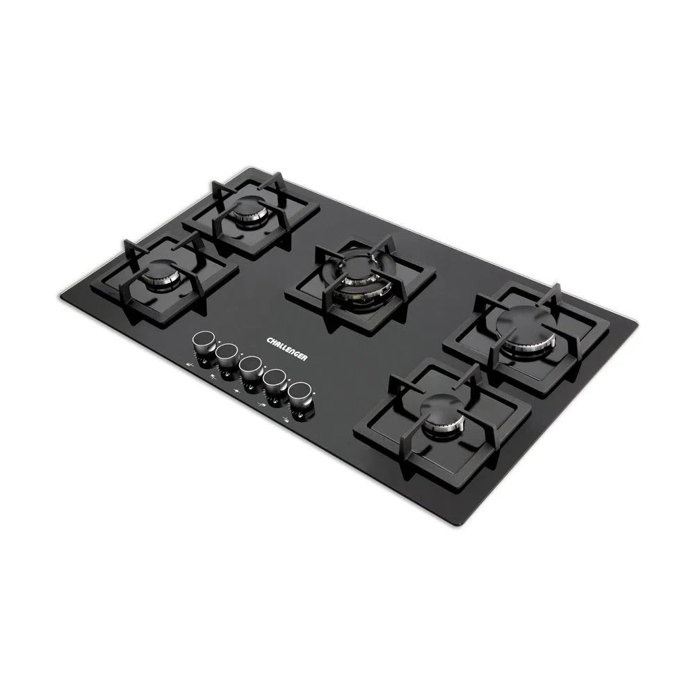 Estufa de Empotrar Challenger en Vidrio Templado Negro 91 cm – 5 Puestos Gas Natural (SQ 6792 AE)