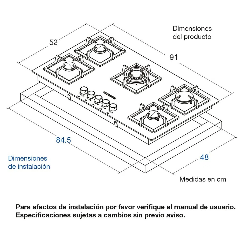 84,5 x 48 (Ancho x Profundidad) |