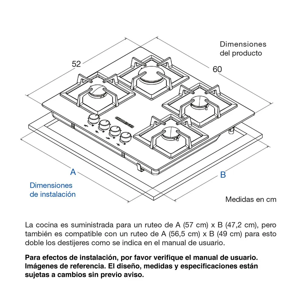 | Dimensiones de ruteo (cm) |