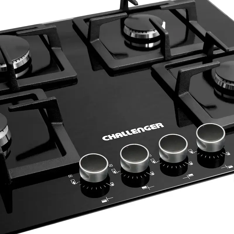 Cubierta a Gas SQ6762 Serie Cristal Squadra 4 Puestos – Vidrio Negro
