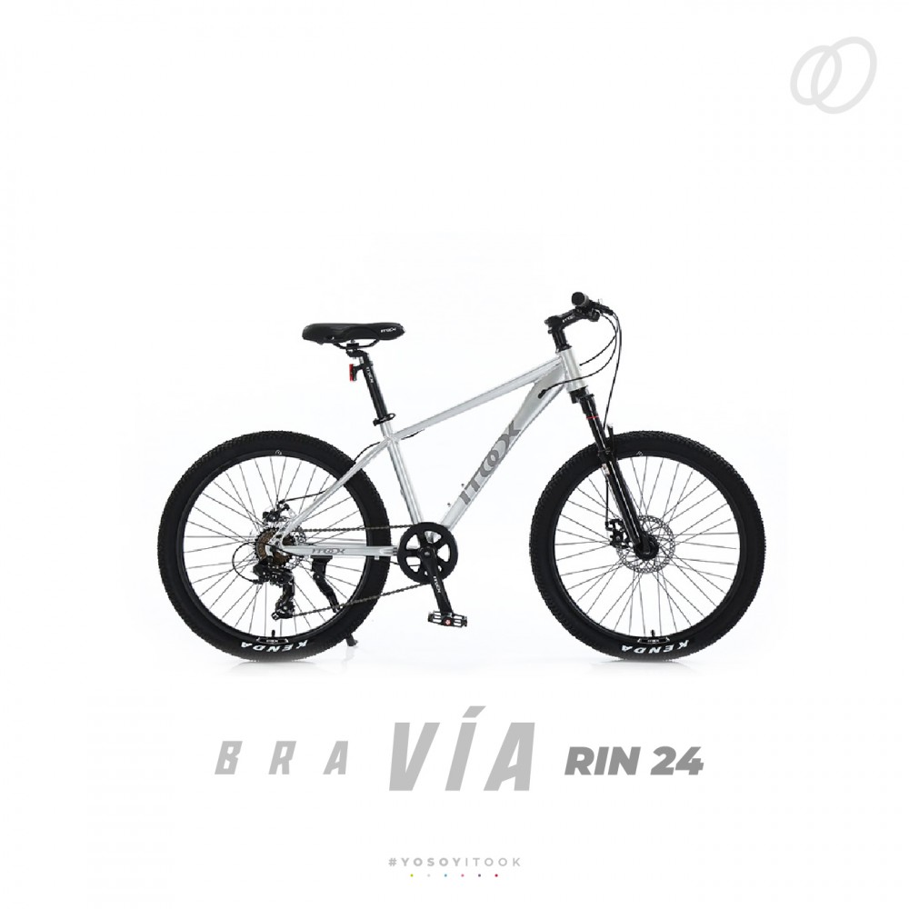 Bicicleta ITook Bravia Rin 24 plateada. Ideal para jóvenes. Envío rápido y seguro a Bogotá y toda Colombia. ¡Explora nuevos caminos!