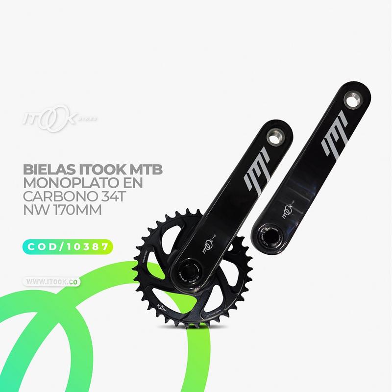 Bielas de carbono ITOOK para bicicleta MTB, 34T narrow-wide 170mm. Ligeras y de alto rendimiento