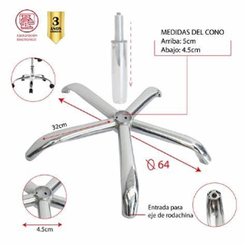 Base cromada para silla giratoria, resistente y duradera.