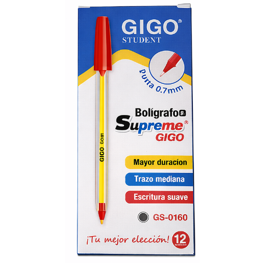 Bolígrafo de tapa negro/rojo/azul referencia GS-0160 GIGO STUDENT SUPREME