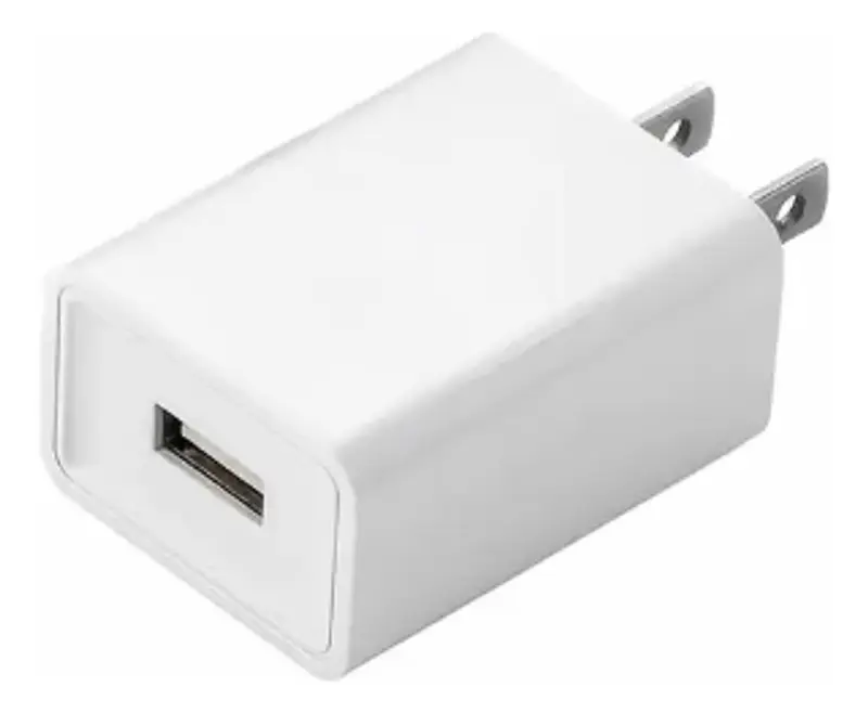 Cargador de pared con puerto USB de carga rápida.
