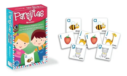 Juego de memoria visual con pares de cartas ilustradas para niños pequeños.