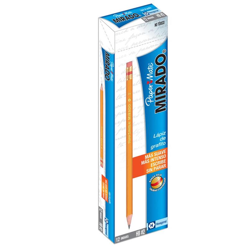 Lápiz de madera. Mina de grafito HB No. 2. Escritura más suave e intensa. Borrador especialmente formulado que no mancha ni rompe el papel.