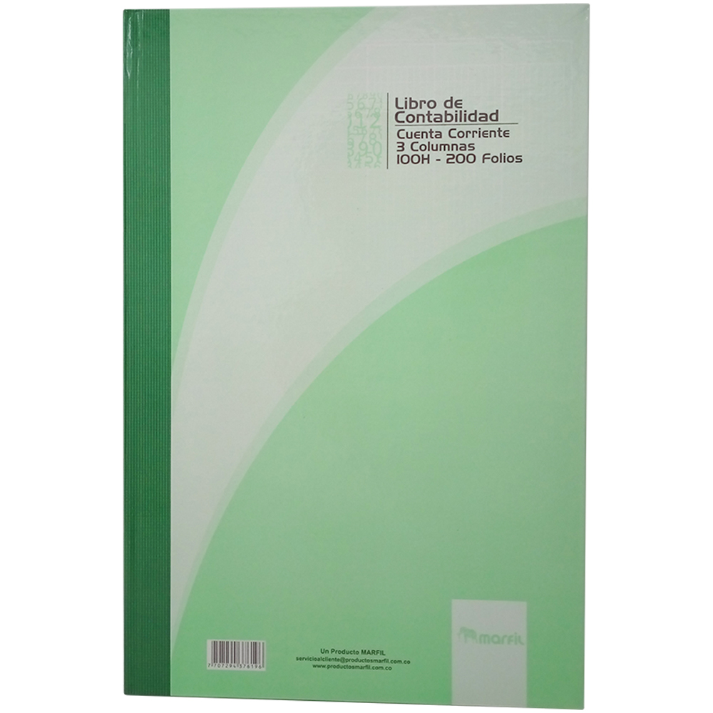 Libro de contabilidad 3 Columnas 200 Folios 100 Hojas Auxiliar Marfil. Caratula Pasta Dura. Tecnología agarre: cosido. Hojas mas gruesas. Líneas mas definidas. Columnas a color.