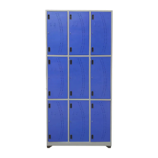 Locker metálico vertical de 9 puestos. Ideal para almacenar objetos personales.