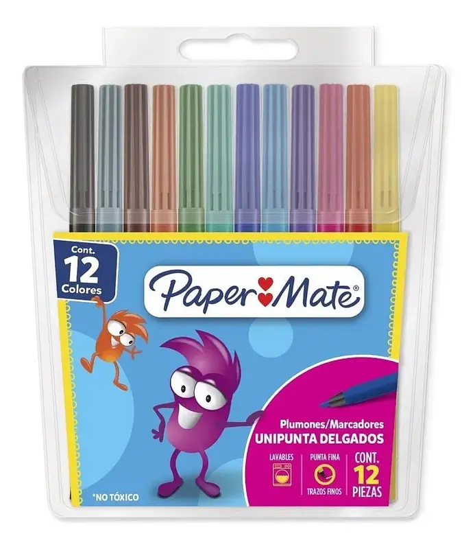 Caja x 12 plumones unipunta,Ideales para pintar o escribir sobre papel, cartón o madera, etc. Punta fina. Variedad de colores.