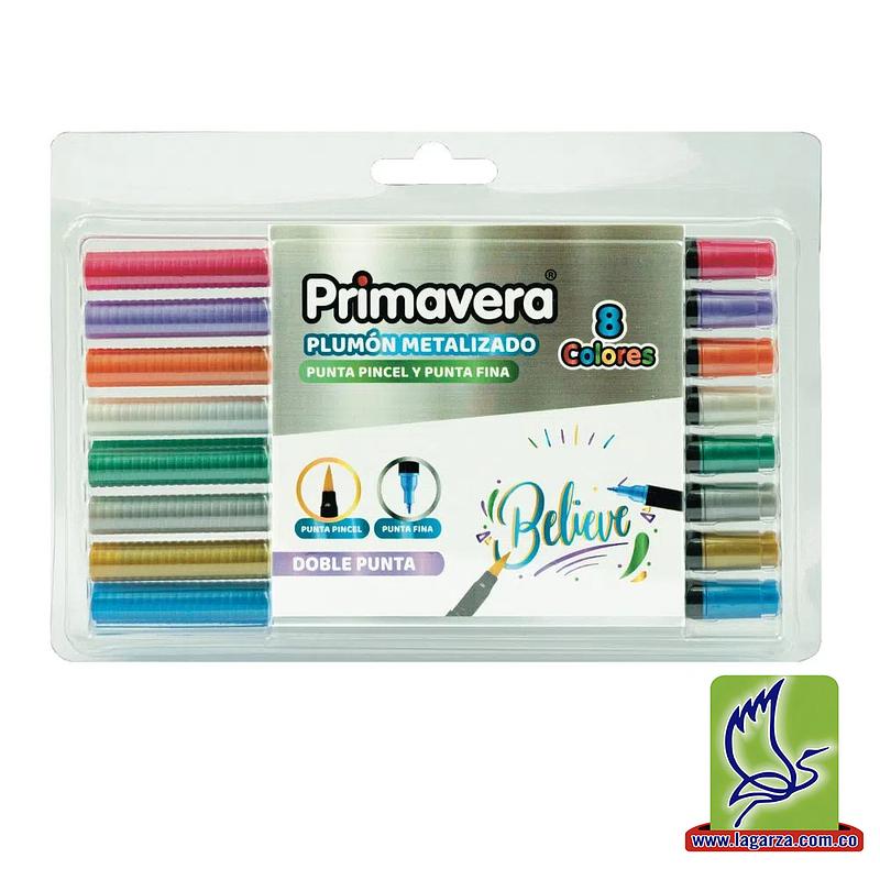 Plumón Primavera Punta Pincel Doble Punta Colores Metalizados 8 colores