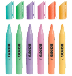 Resaltador x6 pastel Highliner Kores, tonos suaves, ideal para destacar sin sobrecargar.