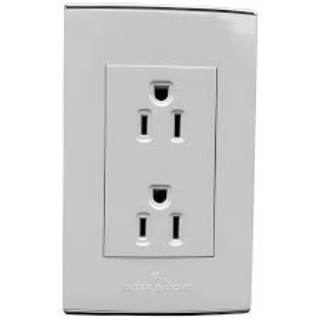 Toma doble blanca con polo a tierra, segura para el hogar u oficina.