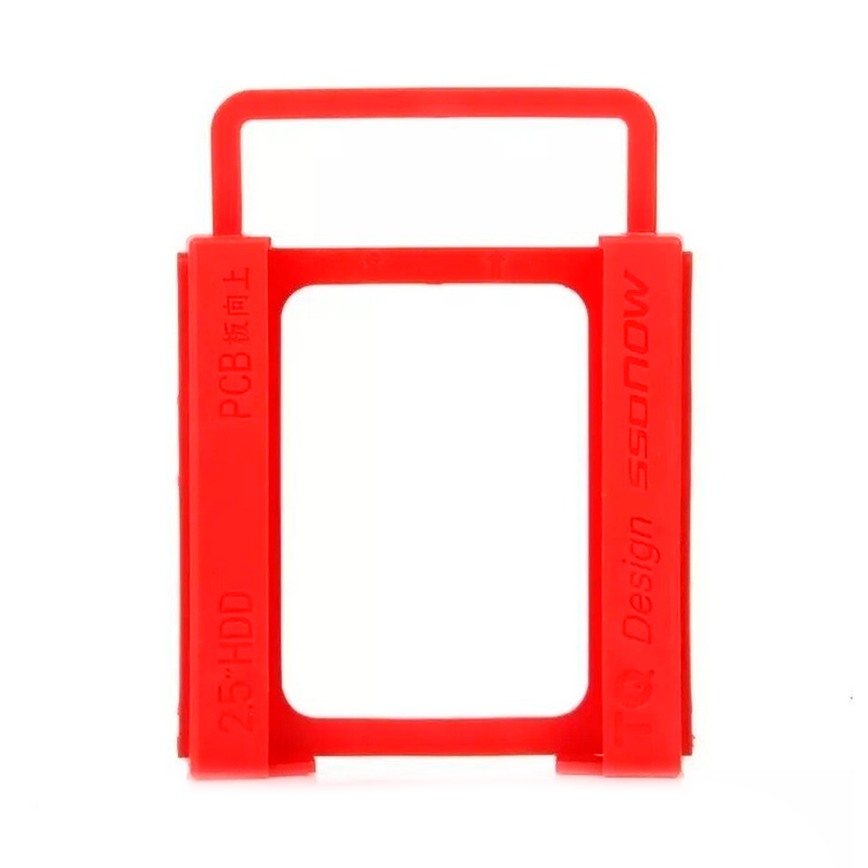 Soporte para adaptar un disco duro de 2,5 pulgadas a un tamaño de 3,5 pulgadas, facilitando su montaje en la torre del computador e incluyendo los agujeros a los lados para atornillar si se requiere en la bahía.