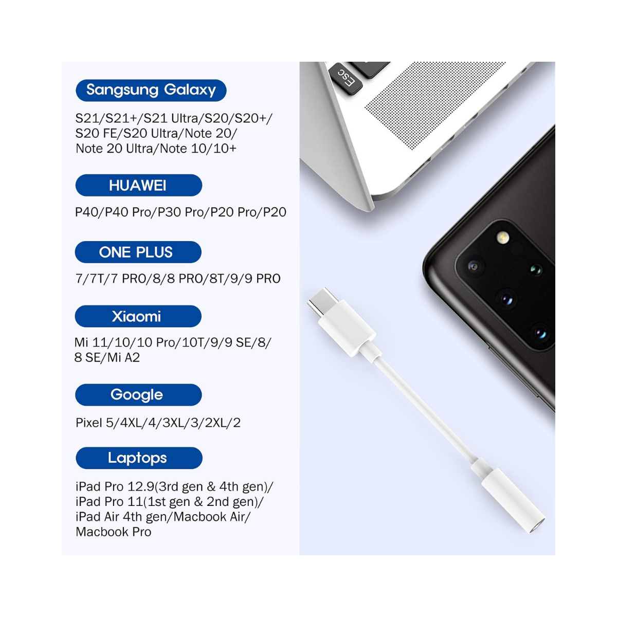 Amplia compatibilidad: nuestro conector de auriculares USB C macho a hembra de 0.138 in funciona bien con todos los dispositivos tipo C sin conector de auriculares de 0.138 in. Incluye Samsung S21/ S21 Plus/S21 Ultra, OnePlus 9 Pro/ 9/ 8T/ 8 Pro/ 8/ 7T Pro/ 7T/ 7 Pro/ 7/ 6T, Samsung S20 FE/ S20/ S20 Plus/ S20 Ultra/ Note 20 Ultra/ Note 20, Google Pixel 5/ 4 XL/ 4/ 3 XL. / 3/2 XL/ 2, compatible con iPad Pro 2020/2018, compatible con iPad Air de 4ª generación y otros dispositivos Android con conector USB-C y más.