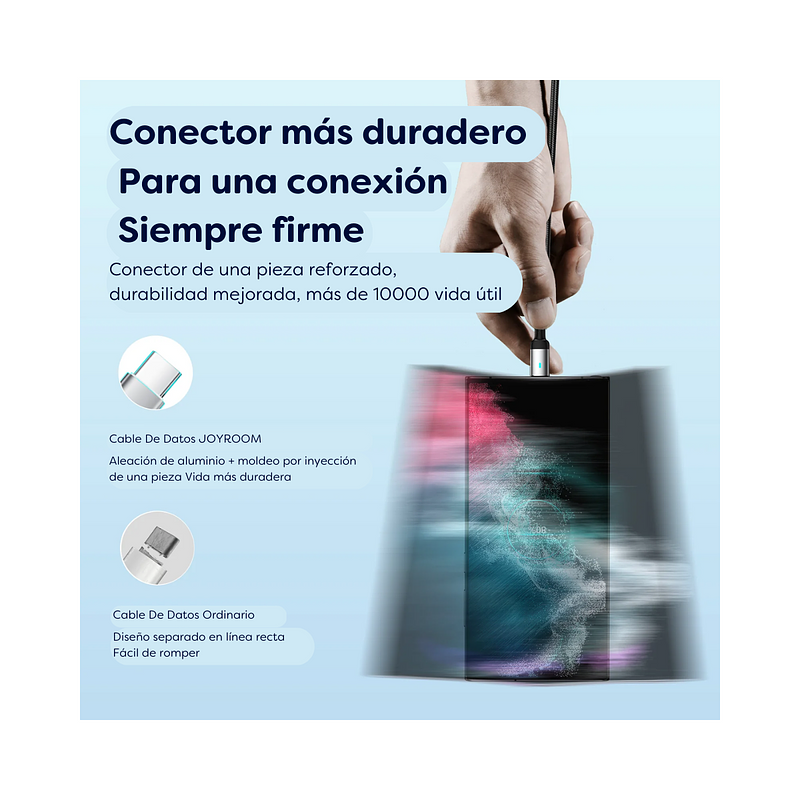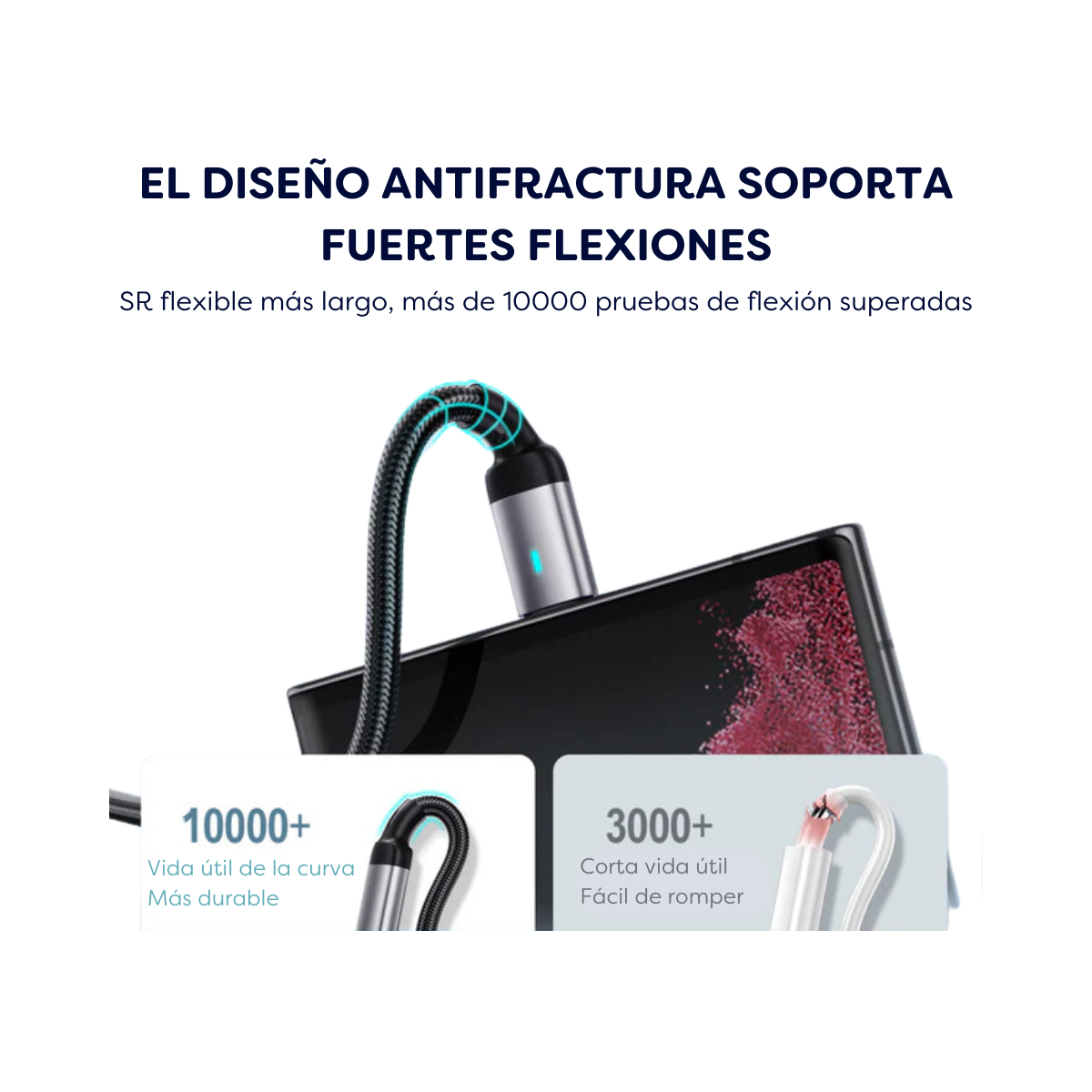 Conector de una pieza reforzado, durabilidad mejorada, más de 10000 vidas de enchufe, carga rápida de alta potencia de 100w