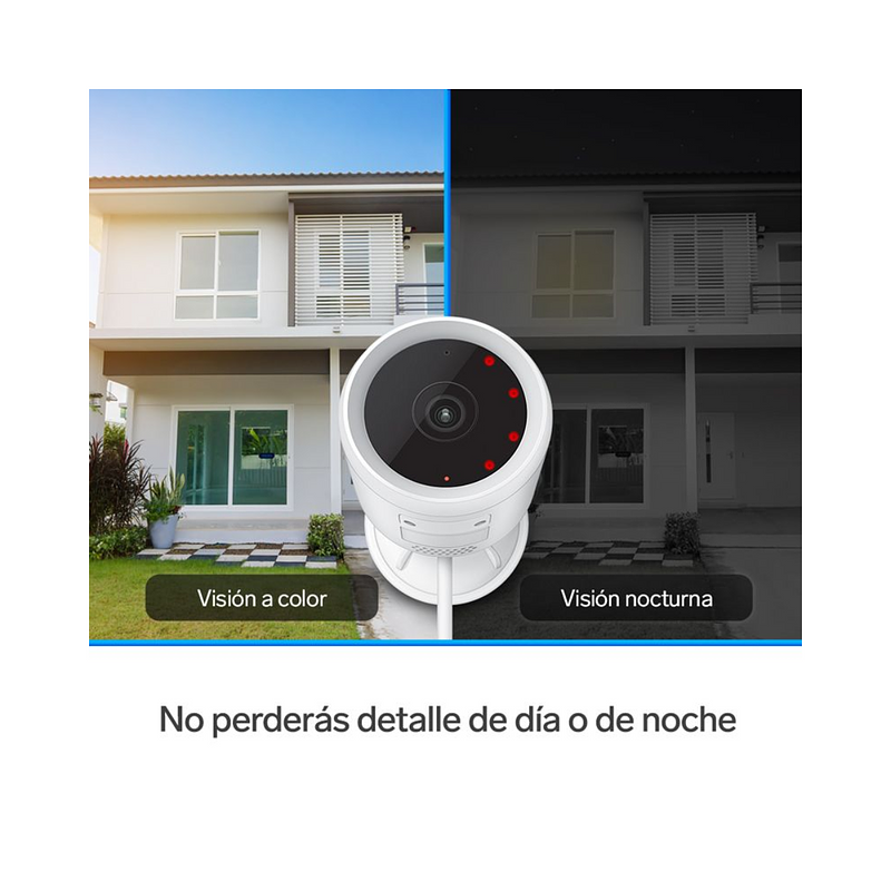 Está fabricada con materiales resistentes para que la instales afuera de tu casa o negocio y puedas vigilar los alrededores. La visión nocturna se activa automáticamente en condiciones de oscuridad, pues alrededor del lente incorpora LED infrarrojos.