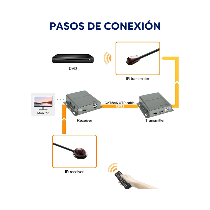 Extiende la imagen de un punta A en un punto B de larga distancia mediante cable de red cat 5e/6.