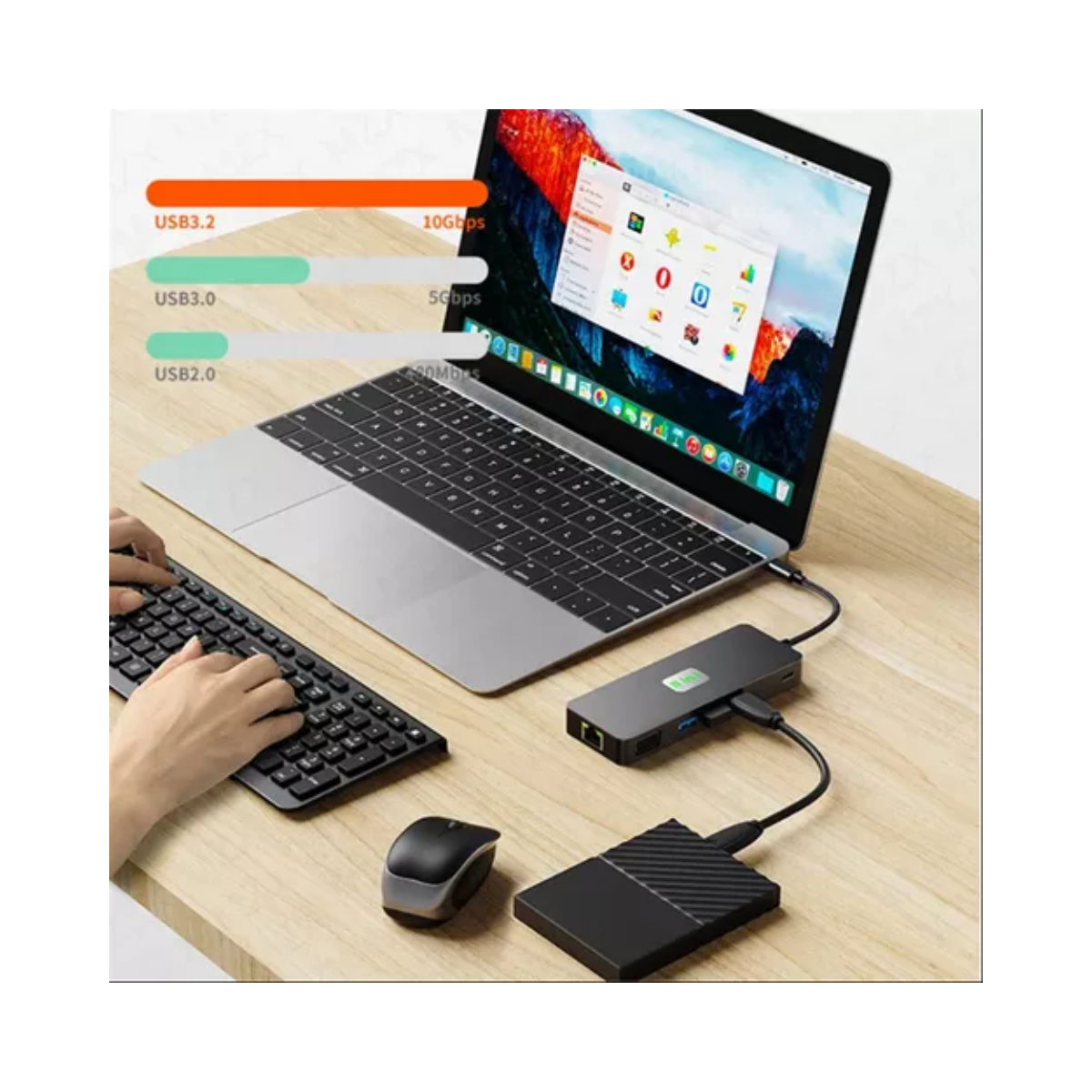 Estación Hub 11 en 1 Usb C a HDMI 4K, 60Hz, DP.Compatible con macBook, Pc, laptop