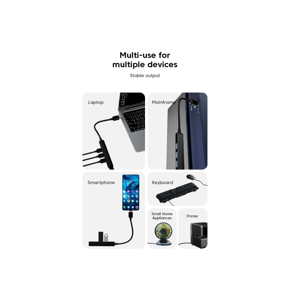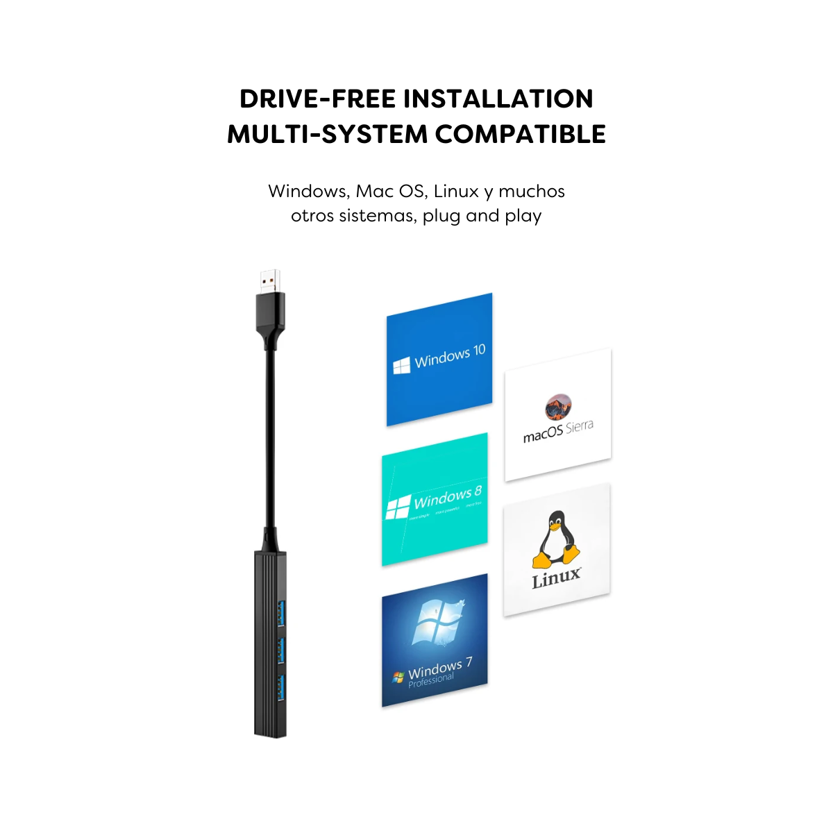 Compatible con la versión USB 3.0, este modelo 4 en 2 te permite conectar hasta cuatro dispositivos simultáneamente. Ya sea que necesites conectar un mouse, un teclado, una impresora o un disco duro externo, este hub USB es la solución perfecta para todas tus necesidades de conectividad.
