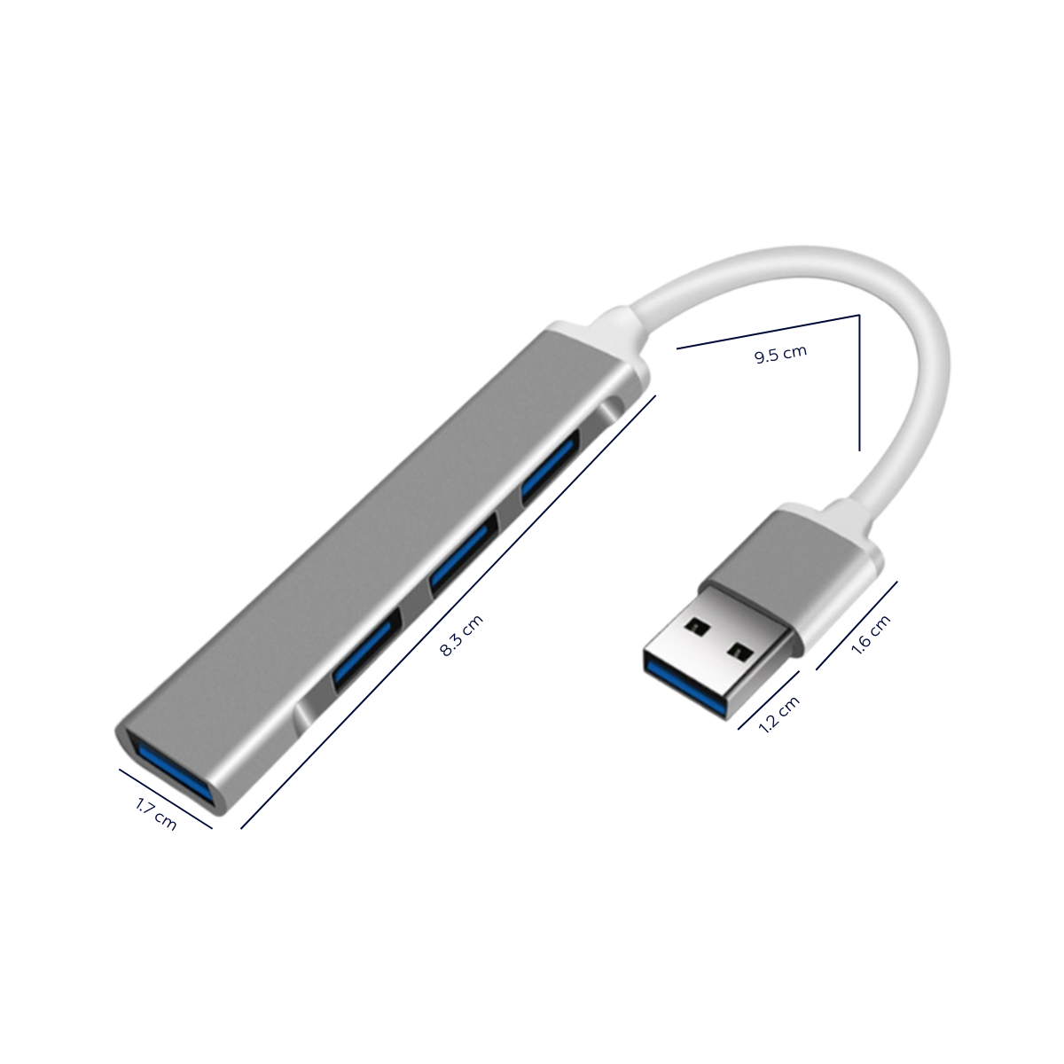 Multipuerto adaptador 4 en 1 USB hecho de aluminio con puertos 3.0
