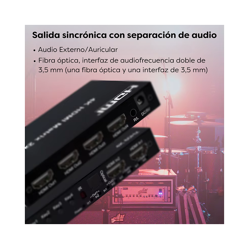 Conmutador HDMI de matriz verdadera 4K 2x4 Conmutador de vídeo HDMI de matriz Divisor 2 entradas 4 salidas con extractor de audio óptico y R/L