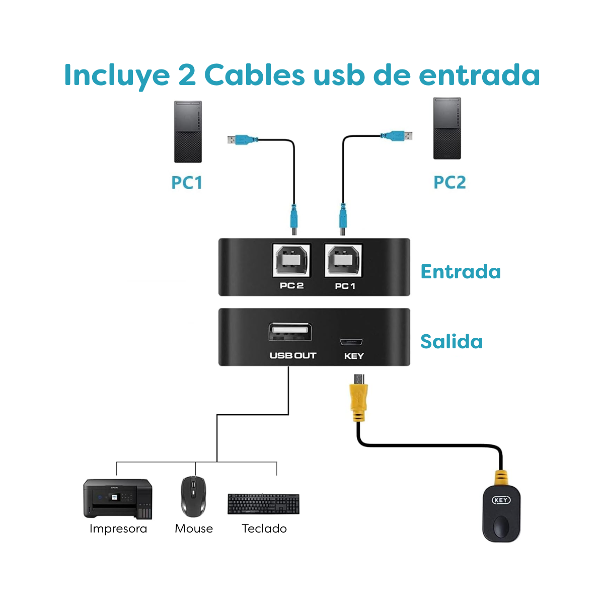 Optimiza tu espacio y ahorra tiempo con el Switch USB Multipuerto para impresora. Conecta 2 PCs a una misma impresora sin necesidad de configuraciones complicadas.