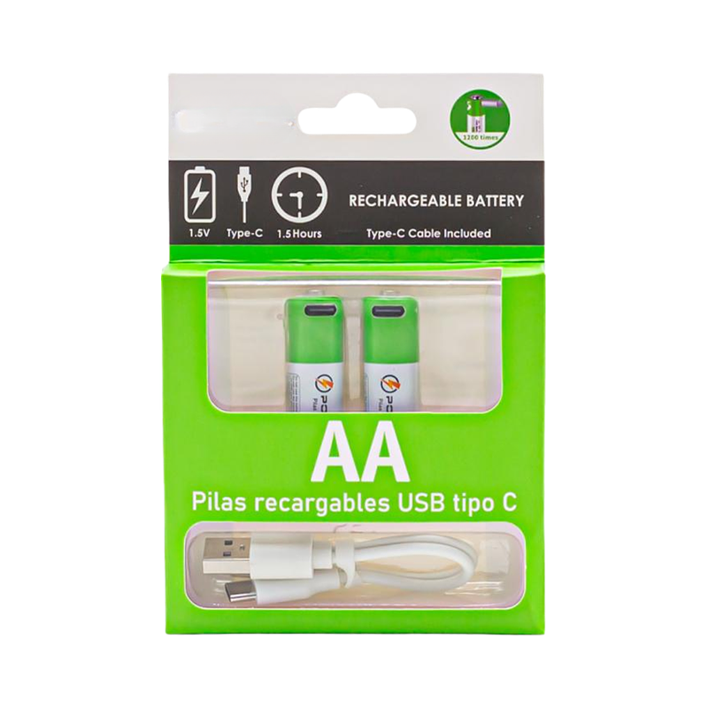 Pilas recargables AA de 1.5V con puerto USB-C, carga rápida en 1.5 horas e incluye cable