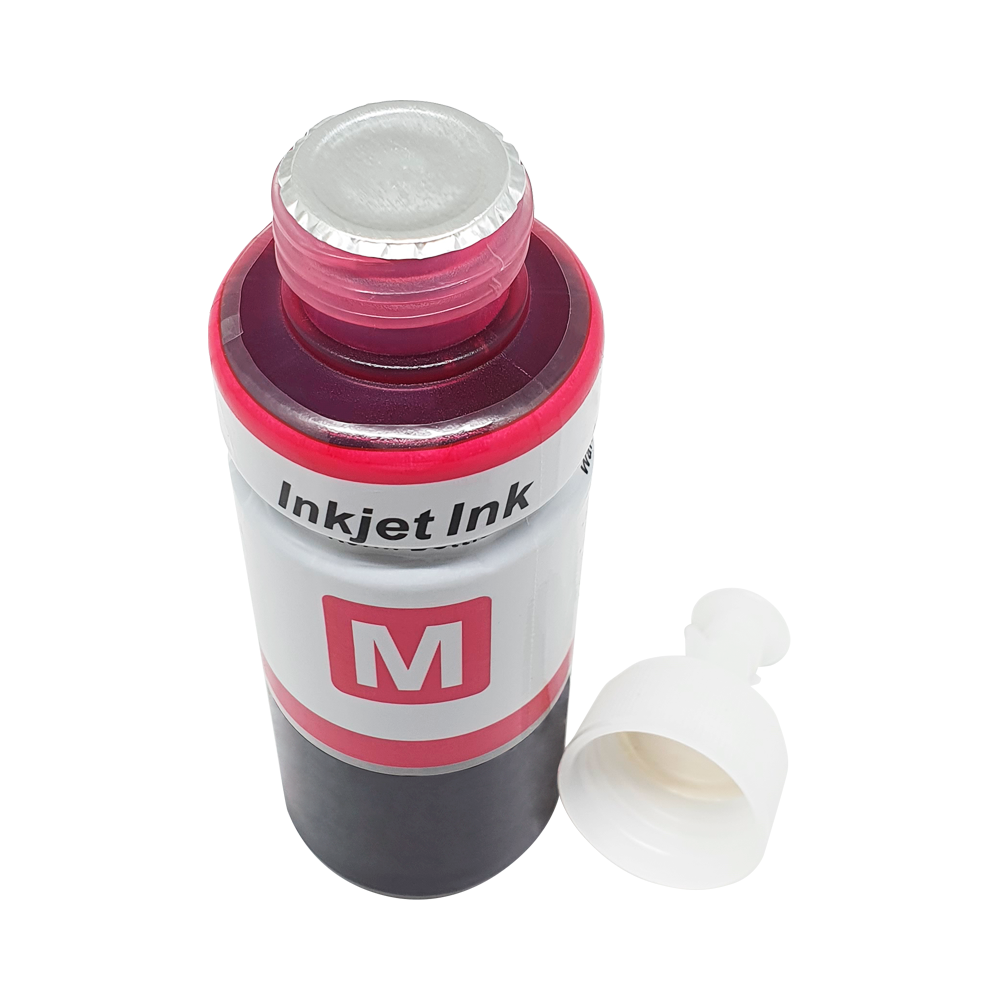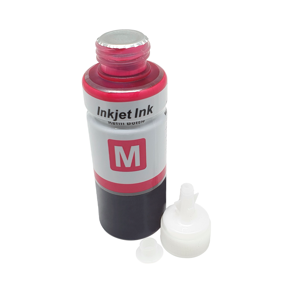 Botella de tinta genérica color magenta en presentación 100 ml, usada en impresoras L210/L355/L555/L350