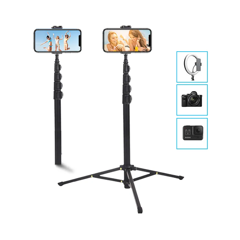 Diseño compacto y liviano, las patas ajustables y el cabezal panorámico de tres direcciones del trípode lo hacen ideal para fotografía y videografía móvil, lo que permite transportarlo e instalarlo fácilmente, y brinda mayor estabilidad en terrenos irregulares y perspectivas únicas.