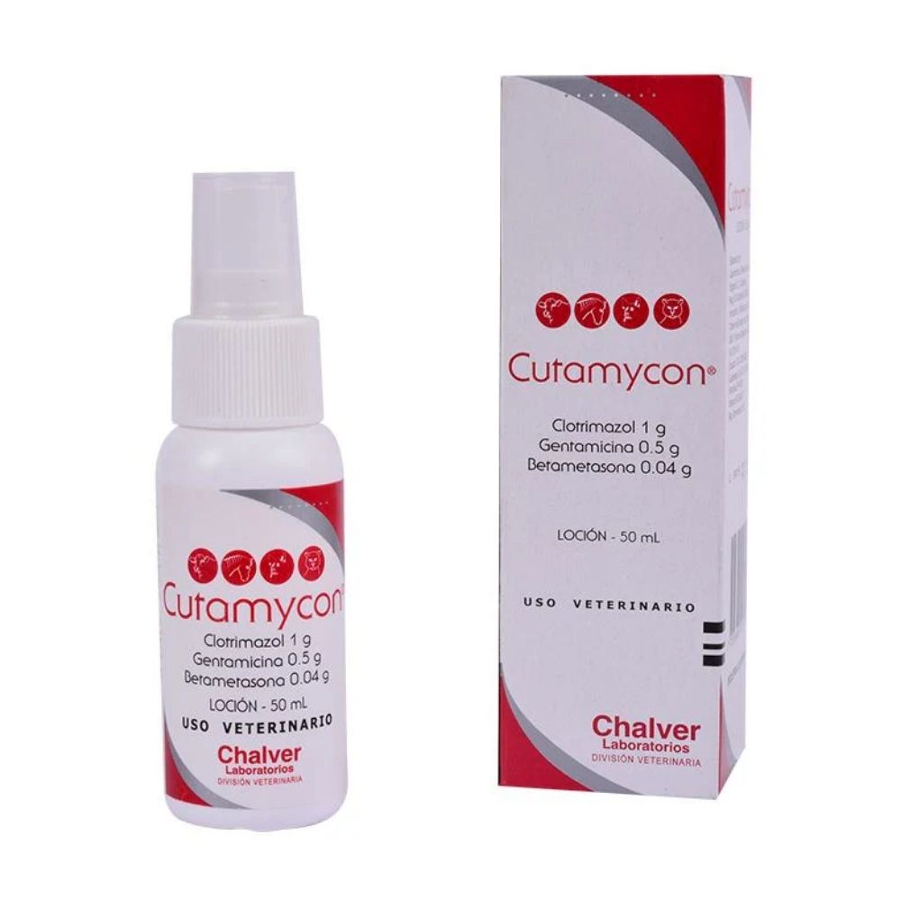 Cutamycon Loción 50 ml es un tratamiento tópico de triple acción diseñado especialmente para aliviar y curar infecciones cutáneas en perros y gatos. Gracias a su poderosa combinación de clotrimazol, gentamicina y betametasona, combate eficazmente hongos, bacterias e inflamación en la piel. 🌿💪