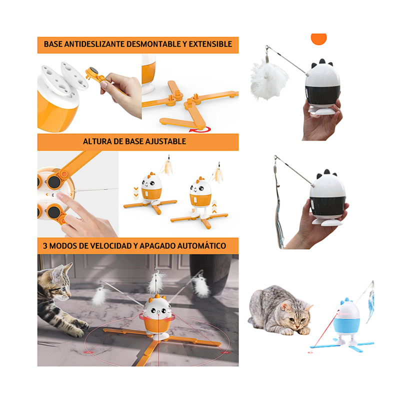 ¡Diversión sin fin para tu gato incluso cuando no estás en casa! Este juguete automático con diseño divertido y movimiento de 360° mantiene a tu felino activo, entretenido y feliz durante horas.
