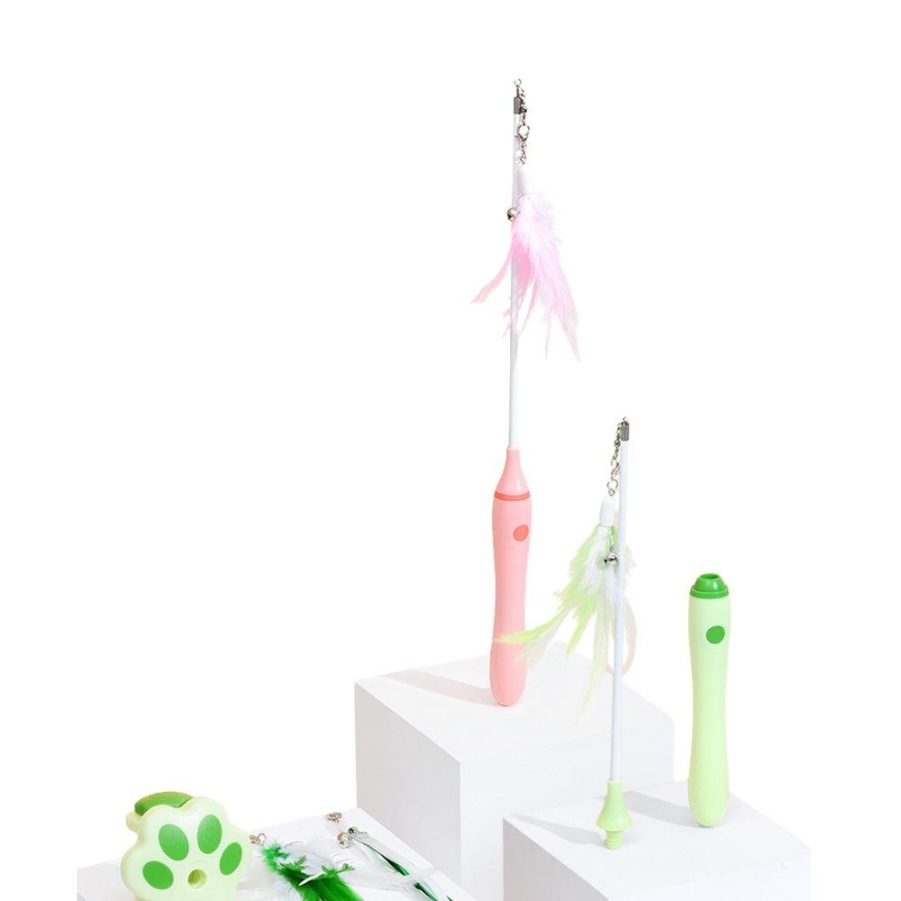 ✨ Diseño atractivo: varita ligera con plumas suaves y coloridas que llaman la atención del gato.