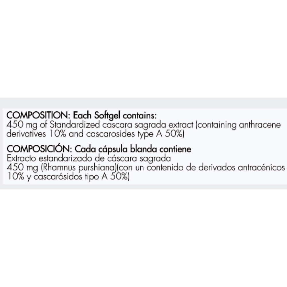 Extracto de la corteza de Cascara Sagrada - Rhamnus Purshiana de candolle (derivados antracénicos 10%, cascarósidos 50%) (Vegetal).