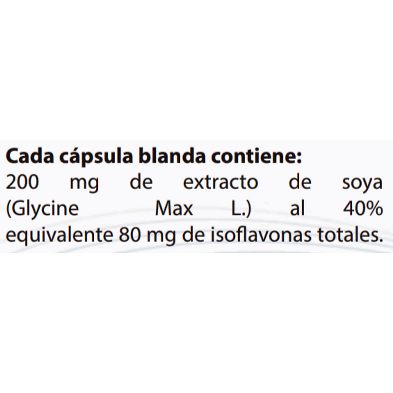 Cada cápsula blanda contiene: 200 mg de extracto de soya (Glycine Max L.) al 40% equivalente 80 mg de isoflavonas totales.