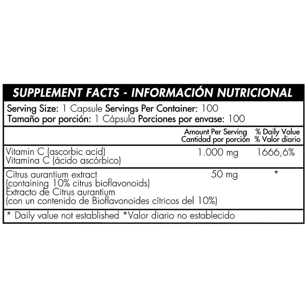 La vitamina C tiene propiedades antioxidantes, mejora la absorción del hierro y contribuye a la formación de colágeno para el funcionamiento normal de la piel. Este producto es un suplemento dietario. No es un medicamento y no suple una alimentación equilibrada.